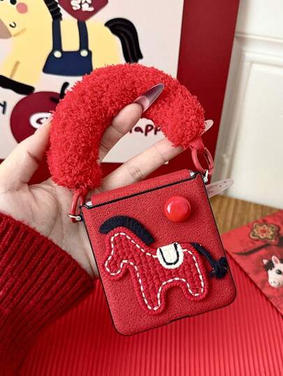 1个时尚简约的新年氛围毛绒特洛伊元素折叠手机壳,搭配同色系手提绳,可保护手机并防止跌落:适用于三星Galaxy Zflip 3/Zflip 4/Zflip 5/Zflip 6/Zflip 7/ Razr 50 Ultra/ Razr 60 Ultra/ Razr 60/ Razr 50/Galaxy Z Flip7 FE - 紅色 - 查看 1