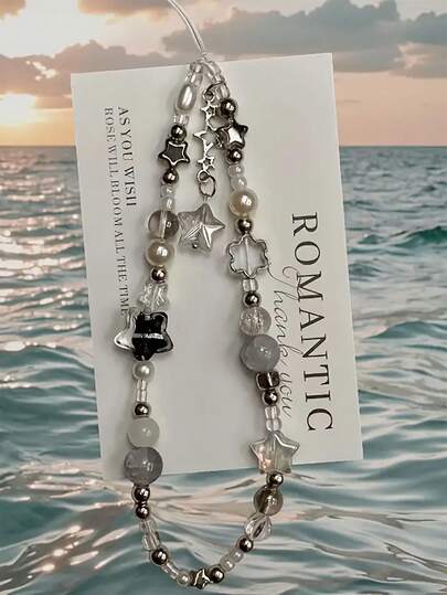 1 件时尚串珠手机挂绳,星形串珠配件适用于手机、相机、耳机、个性化装饰礼物 - 銀色 - 查看 1