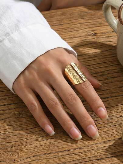 1件 时尚休闲创意百搭简约开口戒指(女士款) - 金黃色 - 查看 1