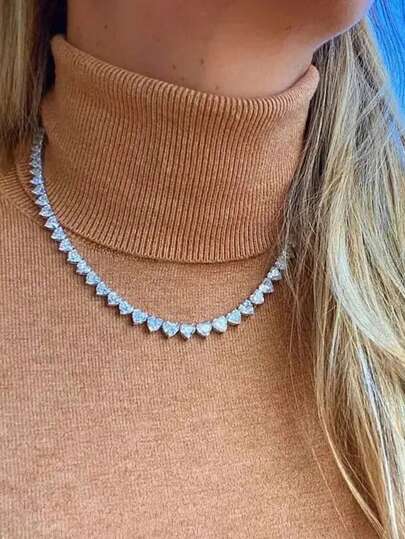 1枚時尚休閒心形立方氧化鋯垂墜項鍊,適合女性,在夏季沙灘派對上完美展現 - 白色 - 查看 1