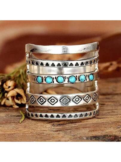 1個時尚創意極簡中空波西米亞風格戒指,獨特設計適合女性日常佩戴 - 復古銀色 - 查看 8