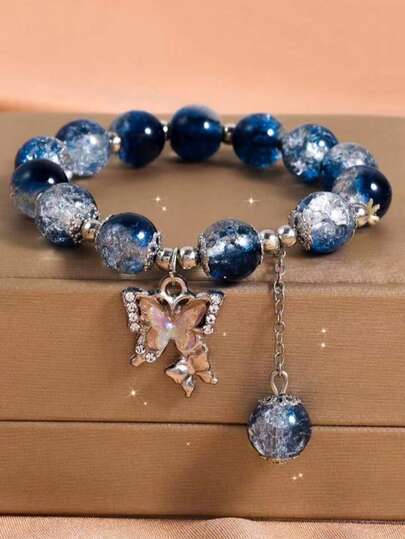 1条时尚可爱蝴蝶串珠手链,适合作为礼物送给朋友和女朋友(吊坠方向随机)