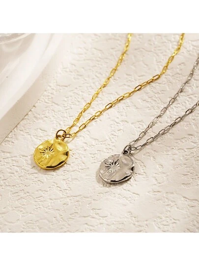 1 件时尚欧美风格不锈钢星形和不对称圆盘吊坠项链,适合女性日常佩戴 - 圓吊牌圖案系列 - 查看 10