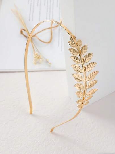 1 件时尚叶子头带发饰适合女孩巴洛克时尚休闲个性化发饰、发带、发箍头带 - 金色 - 查看 1