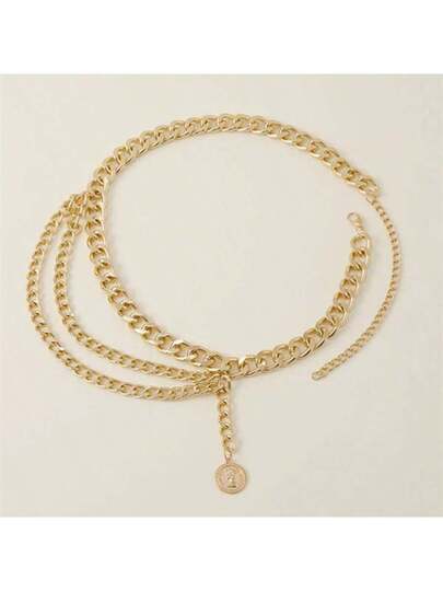 1條時尚金屬鍊子腰鍊,帶肖像吊飾和流蘇裝飾,適用於女性日常穿著、裝飾等 - 金黃色 - 查看 1