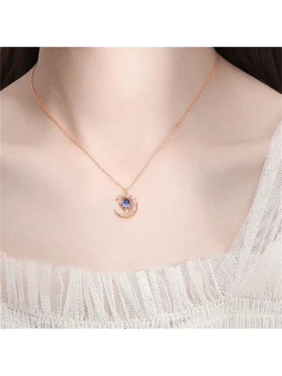 1件時尚的藍寶石裝飾銀項鍊,呈月亮形狀 - 玫瑰金 - 查看 3