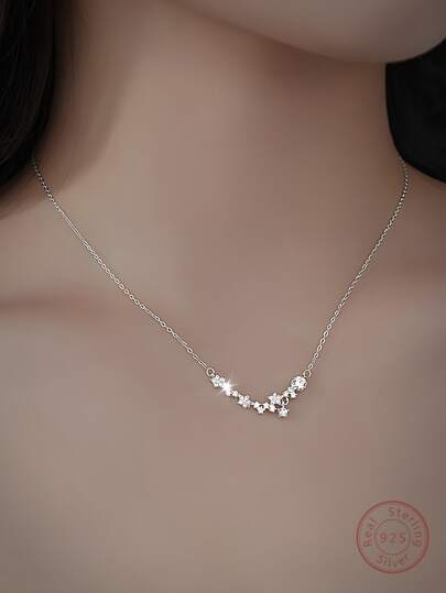 1入組時尚簡約風S925銀星形設計優雅方晶鋯石鑲嵌吊墜項鍊適用於女士日常穿著和派對