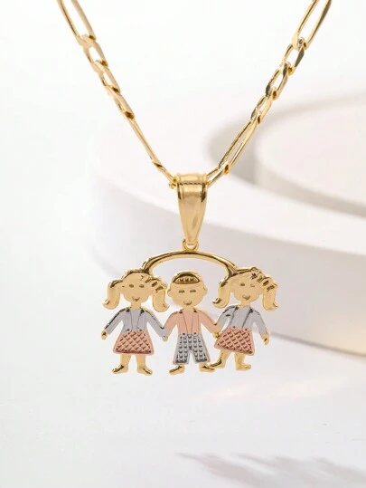 1入流行簡約三色鍍銅雕刻立體家庭握手吊墜項鍊,情侶、朋友、家人的日常和節慶禮物 - 金黃色 - 查看 1