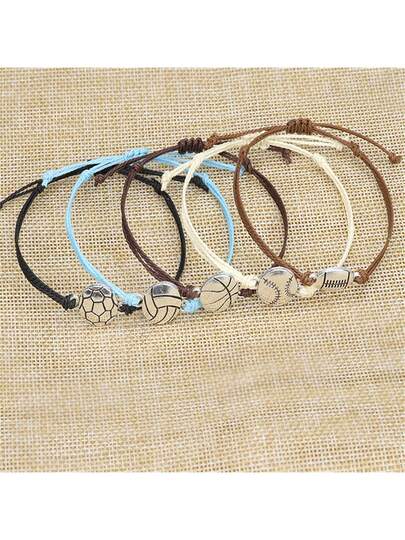 1入時尚簡約防水多色蠟線編織手鍊,運動球形合金墜飾,男女適用手環,適合作為假日禮物 - 彩色 - 查看 6
