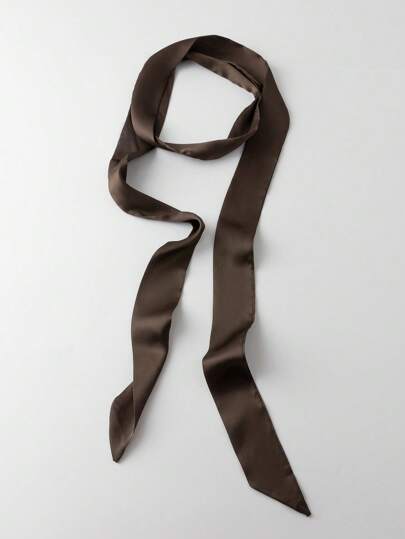 1個時尚純色長而窄的絲巾作配飾,適合辦公場所 - 咖啡棕 - 查看 1