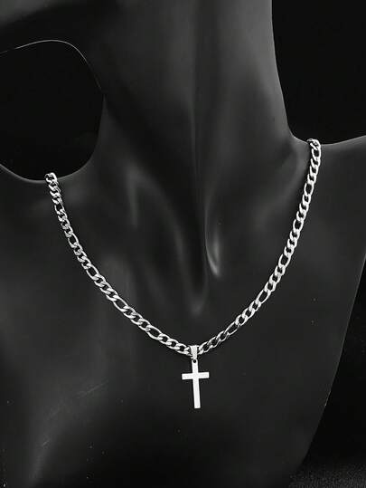 1件时尚不锈钢1:3 NK链十字架吊坠项链,适合儿童派对佩戴和日常佩戴 - 銀色 - 查看 4