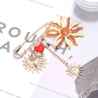 1件时尚太阳心形多功能胸针别针,包包配饰 - 潮流太陽愛心吊墜胸針 - 查看 1