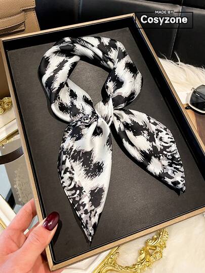 1条仿丝复古优雅豹纹印花70厘米方巾,女士时尚多功能头巾、腰带、装饰围巾,适合日常佩戴、海滩度假等场合