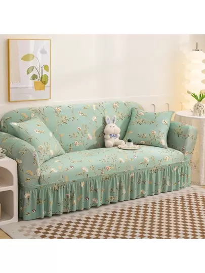 1 件花卉印花沙发套,田园风格牛奶丝弹力全包沙发套,适合所有季节 - 彩色 - 查看 1