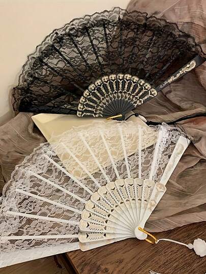 1把可折叠蕾丝高品质塑料手扇,优雅蕾丝折叠扇,时尚可折叠手扇,适合作为礼物送给朋友和家人,适合情人节、婚礼、斋月聚会、正式场合、母亲节等。
