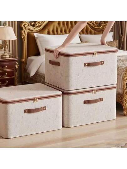 1 件可折叠亚麻布收纳盒,带可见窗口,大容量衣服、被子、衣柜收纳盒 - 米色 - 查看 1