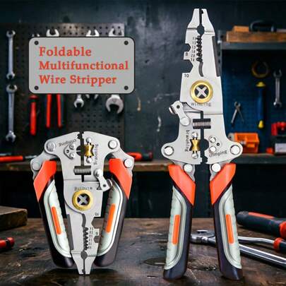 1个可折叠剥线钳,多功能:绕线、剥线、分线、剪线、剥皮、压接、拧线,便携式,家用必备,适用于电工和汽车维修。