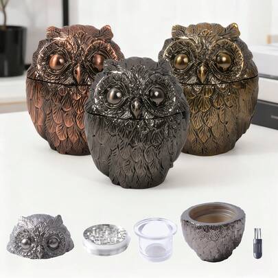 1个趣味猫头鹰造型烟草研磨器,4层设计,3种颜色可选,带内置烟草收纳空间,是万圣节、感恩节的绝佳礼物 - 銀色 - 查看 10