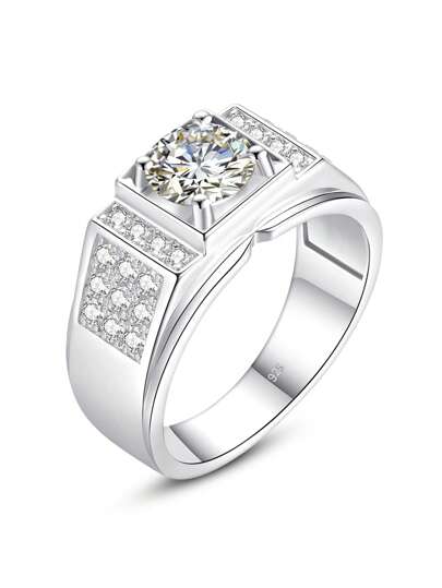 1入華麗的925銀實驗室創造的莫桑石裝飾銀戒指,男士婚禮訂婚新娘珠寶 - 白色 - 查看 1