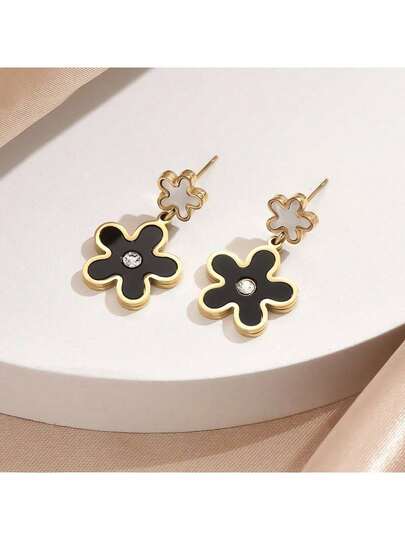 6. 1件金色不锈钢五瓣花耳钉,小众复古简约时尚休闲百搭女款,适合街头、日常、假日、派对等场合(OPP袋包装)