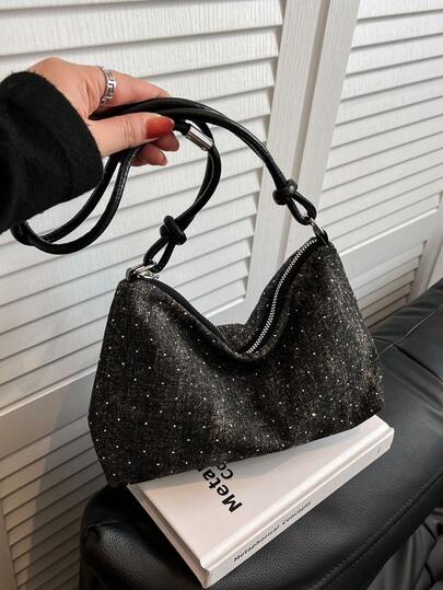 1 件金色亮片新月形 PVC 女士单肩包,新品上市 - 黑色 - 查看 1