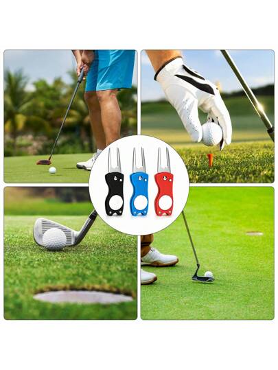 1 件装高尔夫草皮修复工具金属可折叠高尔夫草皮修复工具带弹出按钮适合专业高尔夫球手 - 彩色 - 查看 3
