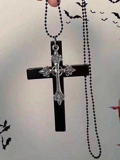 1 件哥特式 Y2K 风格银十字架项链,信仰十字架吊坠项链适合男女,日常穿着和服装配饰 - 黑色 - 查看 1