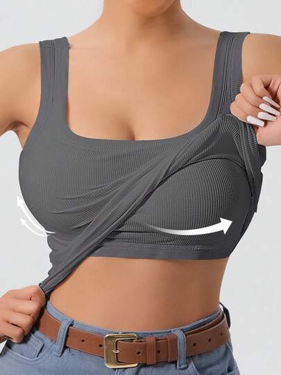 1 件灰色深 U 型后背可拆卸衬垫修身休闲吊带背心,适合健身 - 深灰色 - 查看 1