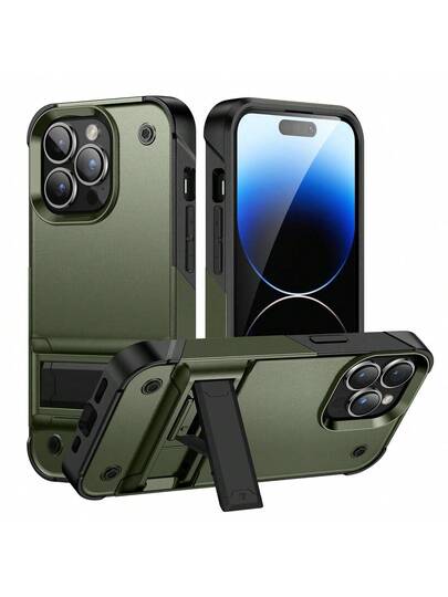 1入綠色裝甲多重防護防震手機殼,配有隱形可摺疊支架,適用於iPhone - 軍綠色 - 查看 1