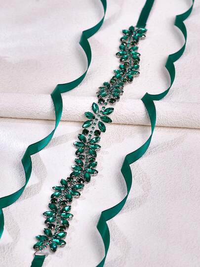 1件绿色玻璃水钻贴花婚纱腰带,时尚纤细新娘腰带,适合生日派对、化装舞会、鸡尾酒会、订婚庆典、惊喜主题派对、情人节服装配饰 - 綠色絲帶 - 查看 1