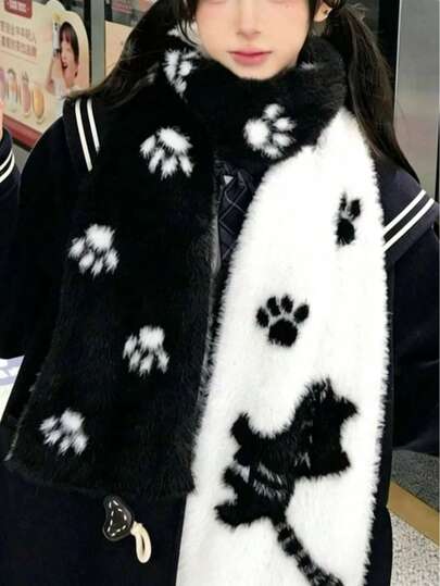 1条吉他与破碎心猫双面黑白蓬松围巾,保暖柔软,是送给女友或闺蜜的完美礼物,也可作女士披肩使用。 - 彩色 - 查看 4