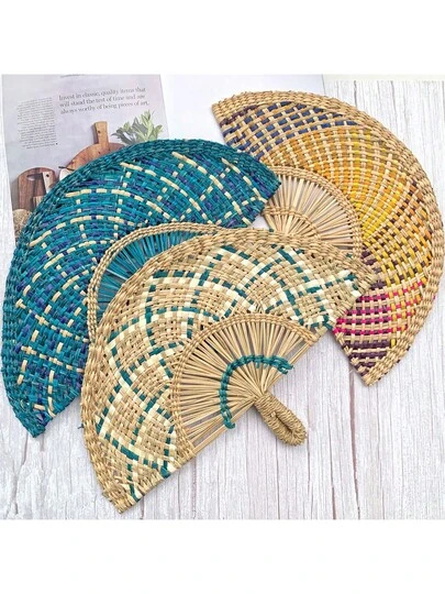1 件手工编织海藻扇,非洲风格手持扇,壁挂装饰扇,便携式夏季扇,适合日常使用和摄影 - 彩色 - 查看 1