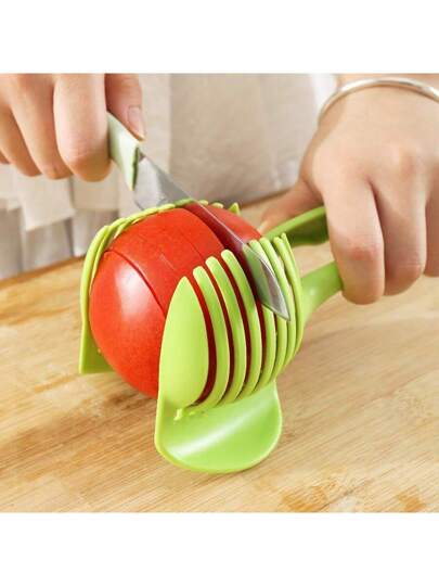 1个手持式水果切片器,橙子/番茄/蔬菜固定器,水果肉类切片器,洋葱切片器,户外烧烤土豆夹,奶茶店/家庭厨房多功能分隔器,食物夹,柠檬切片器,ABS塑料轻便款/加厚不锈钢款 - 綠色 - 查看 1