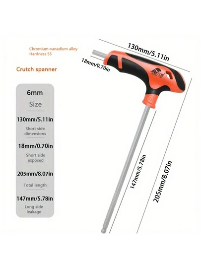1入六角扳手l型內六角扳手鉻鉬合金內六角扳手6mm扁頭/球頭內六角扳手手工工具通用快拍轉接器 - 橘色 - 查看 5