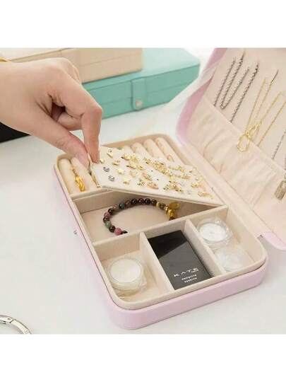 1 件高端 PU 皮革珠宝盒,容量大,配有天鹅绒衬里和隔层存储,时尚优雅的设计 - 彩色 - 查看 1