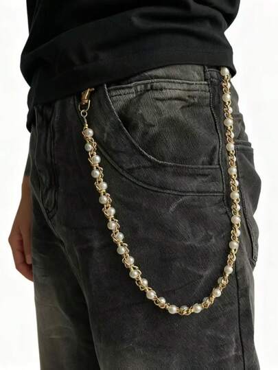 1件嘻哈风仿珍珠缠绕链条腰带,时尚INS风吊坠链条腰链配饰