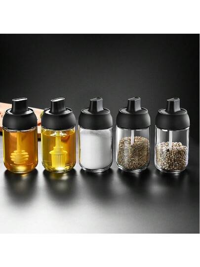 1個家庭廚房一體式調味瓶,防漏防潮集裝箱,適用於蜂蜜、草藥和香料,玻璃密封油存儲容器套裝,帶有小透明瓶的油罐 - 調味瓶 - 查看 1