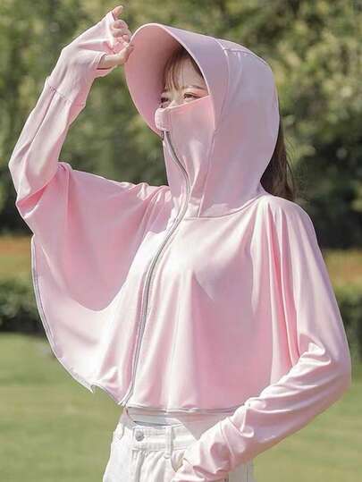 1件冰丝连帽防晒外套,女士新款夏季骑行防晒连帽透气防晒披肩,驾驶防晒服,沙滩必备,沙滩配件,沙滩帽 - 彩色 - 查看 1