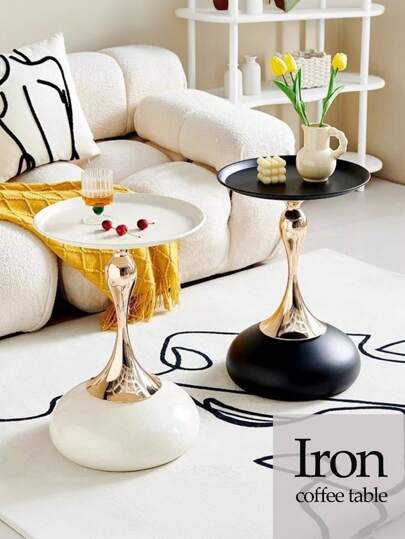 1 件铁制圆形边桌/咖啡桌、沙发边桌、卧室床头柜、小圆形边桌,适用于客厅、卧室、户外花园 - 彩色 - 查看 1