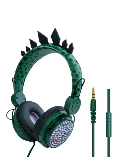 1入組兒童卡通恐龍設計水鑽裝飾有線頭戴式耳機 - 軍綠色 - 查看 1