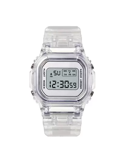 1入組兒童透明矽膠錶帶運動夜光方形錶盤電子手錶適合日常生活 - 無色 - 查看 1