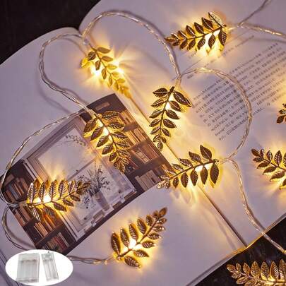 1个LED金色橄榄叶装饰串灯,室内铁艺金色叶子灯,适用于客厅、阳台、露营、庭院、卧室、情人节、斋月装饰(电池供电 - 不含电池) - 鐵藝金葉燈串 - 查看 1