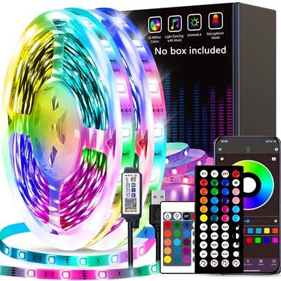 1条LED灯带,1米-20米5050RGB变色LED灯,APP控制,音乐同步,遥控RGB闪烁、呼吸、渐变、平滑功能,USB供电,适用于房间装饰、家居装饰、室内照明、夜灯、电视背光、LED灯、卧室装饰、夜景灯等。