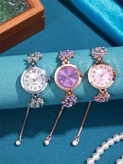 1 件女士彩色花卉镶嵌可调节石英表,数字刻度圆形表盘,优雅风格适合日常佩戴,可作为送给朋友的礼物 - 均碼 - 查看 11