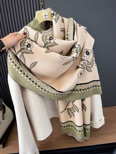 1條女士毛茸茸的花紋披肩,冬季時尚必備品,柔軟舒適保暖適合日常穿著 - 綠色 - 查看 1