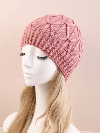 1頂女士粉色針織帽,扭曲花紋設計,單層,時尚又保暖 - 粉色 - 查看 1