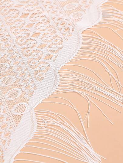 1入組女士白色針織空心花邊和流蘇細節三角圍巾,全季節適用的休閒風格多功能披肩,日常、防曬、透氣、頭巾 - 彩色 - 查看 13