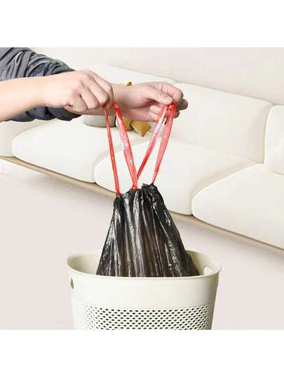 1條大碼自動關閉彩色拉線垃圾袋,帶有厚黑色帶,適用於家用 - 黑色 - 查看 6
