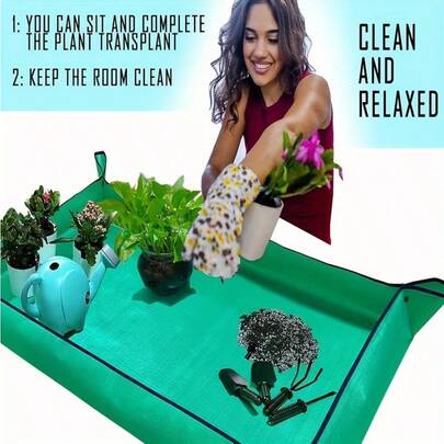 1片装大号盆栽垫 | 加厚可折叠便携式园艺垫,适用于室内植物移植和土壤控制,绿色聚乙烯材质,盆栽垫,移植垫,植物移植垫,防水移植垫,室内多肉植物盆栽垫,便携式园艺换盆浇水垫,方形可折叠,阳台园丁必备,花园维护工具 | 耐用塑料布,植物垫