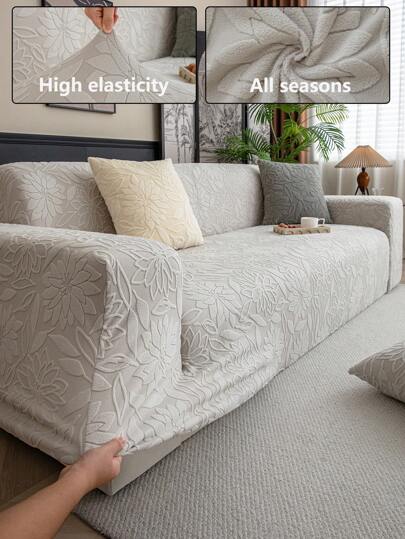 1 件叶形图案弹力沙发套,提花装饰沙发套,保护您的沙发免受猫抓伤,适用于 1/2/3/4 座沙发,附赠 1 个枕套 - 淺灰色 - 查看 12